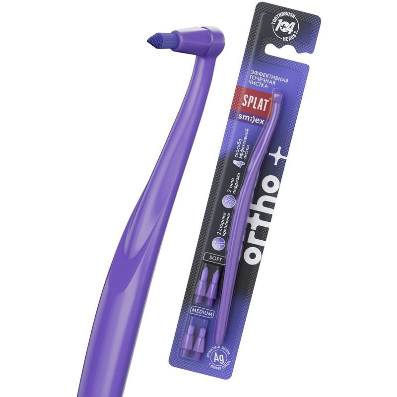 Yenilikçi solo diş fırçası SPLAT® SMILEX ORTHO+ daha yaxşı ağız gigiyenası üçün manual fırçaya zəruri əlavədir. Bu, yalnız bir tutam 850 tükdən ibarət bir fırçadır. Sıx yığılmış tükləri olan solo fırça uzaq çeynəmə dişlərinin, çatların və diş əti yivlərinin divarlarını asanlıqla təmizləyir, həmçinin implantların və digər ortodontik və ortopedik strukturların ətrafındakı ərpi təmizləyir.