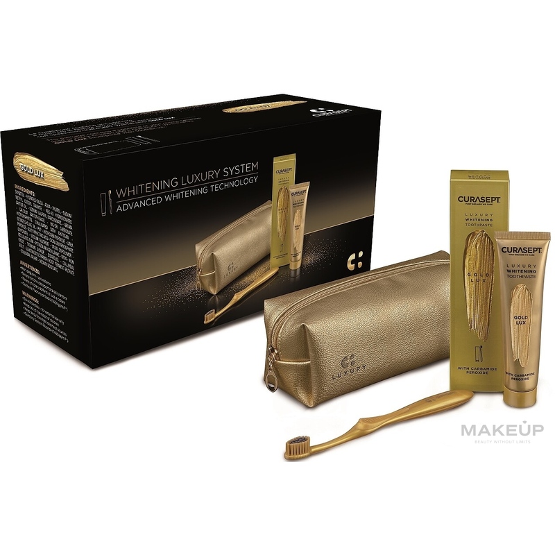 Curasept Gold Luxury, əvvəlcədən qablaşdırılan diş fırçası ilə birlikdə istifadə edilən çox güclü ağardıcı formulaya malik diş məcunudur.