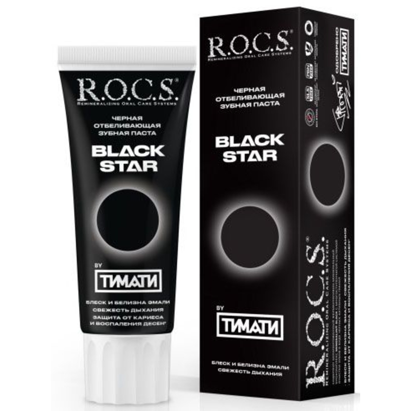 Ультрачёрная зубная паста R.O.C.S. “Black Star” by ТИМАТИ – ослепительная улыбка 24 часа 7 дней в неделю.